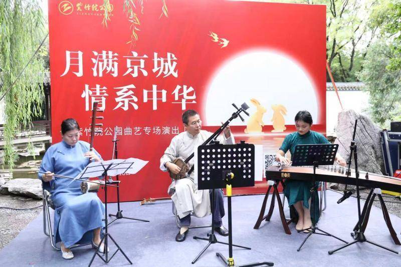 中秋当日,紫竹院公园打造了一场融合传统文化与节日喜悦的盛宴,为晚间赏月营造浪漫氛围。公园东门布置“月满紫竹团圆中秋”传统文化图文展,生动展现中秋文化底蕴与历史传承;上午,一场中秋曲艺文艺演出在友贤山馆温情开演,艺术家们轮番登台,带来京东大鼓《锦上添花》、北京琴书《将军令》、快板《韩湘子上寿》等经典曲目。醇厚的唱腔、明快的节奏与生动的演绎,将中秋阖家团圆、幸福美满的美好寓意传递给游客,现场掌声与欢笑不断,浓厚的文化氛围让游客度过一个充满传统韵味的中秋佳节。